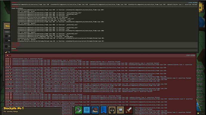Not exactly sure what caused it, hopefully that helps. Also caused game to lag crazily. Noticed in background behind window, worker was repeatedly hitting the same spot for no apparent reason.