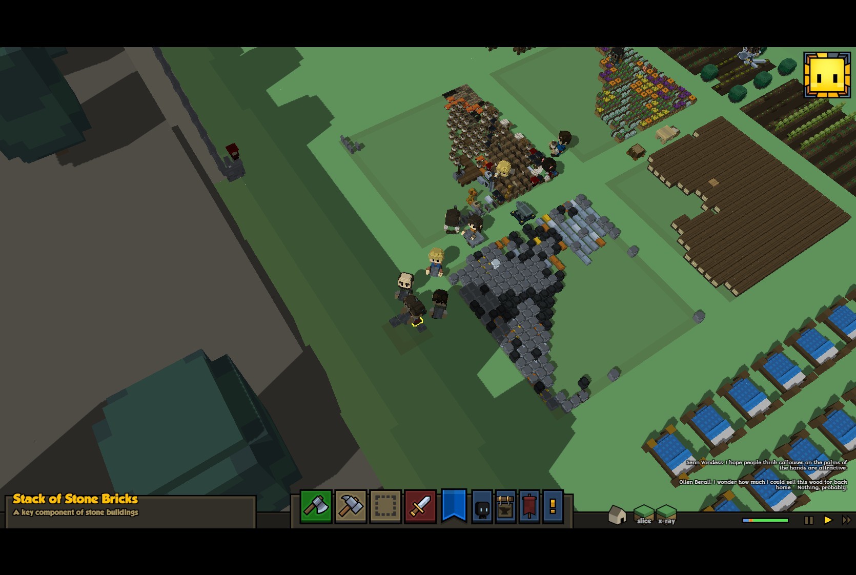 Based on the presented symptoms (which I believe I’ve observed myself), stone bricks are treated, for stockpiling purposes, as if they have a category that is not in the filter options. Thus, the only way for them to be placed into a stockpile by hearthlings is if the Any filter is selected. Stone fences and gates do get stockpiled properly. If the data files indicate (I haven’t looked) that stone bricks have the same category as stone fences and gates, then this suggests that there is a lower or additional grain of categorization than merely the data file category (such as an unexposed flag/enum/field/whathaveyou) in which stone bricks differ from stone fences and gates, and which is considered by the stockpile filter algorithm.