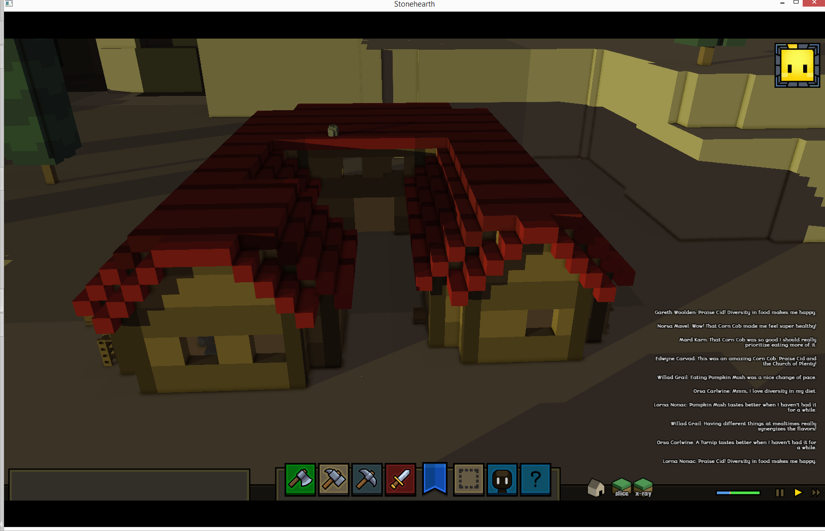 When placing a rotated template house, some windows are often placed off by one voxel from the template. The house is also built with the window off by one voxel.