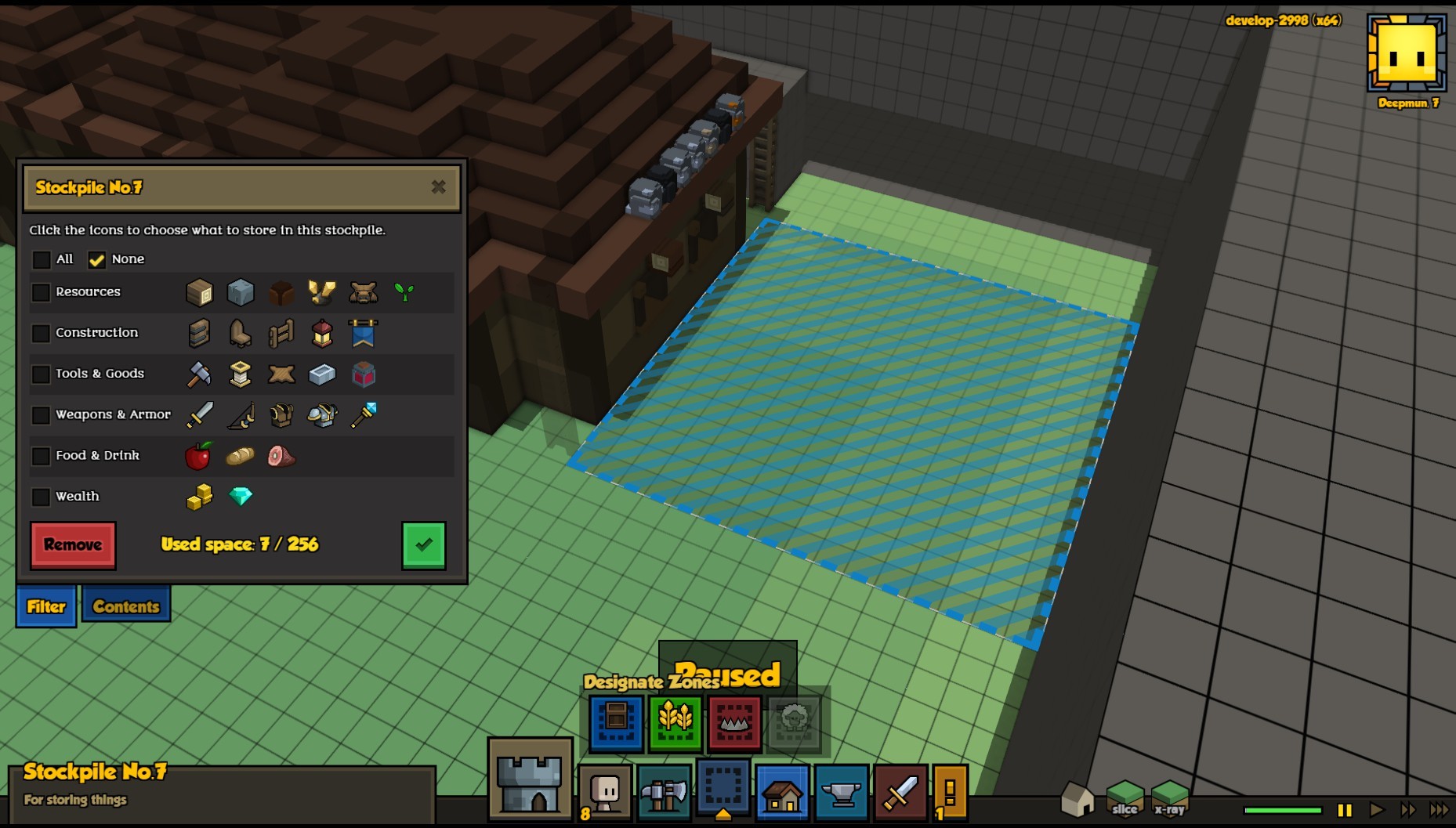 - set stockpile zone